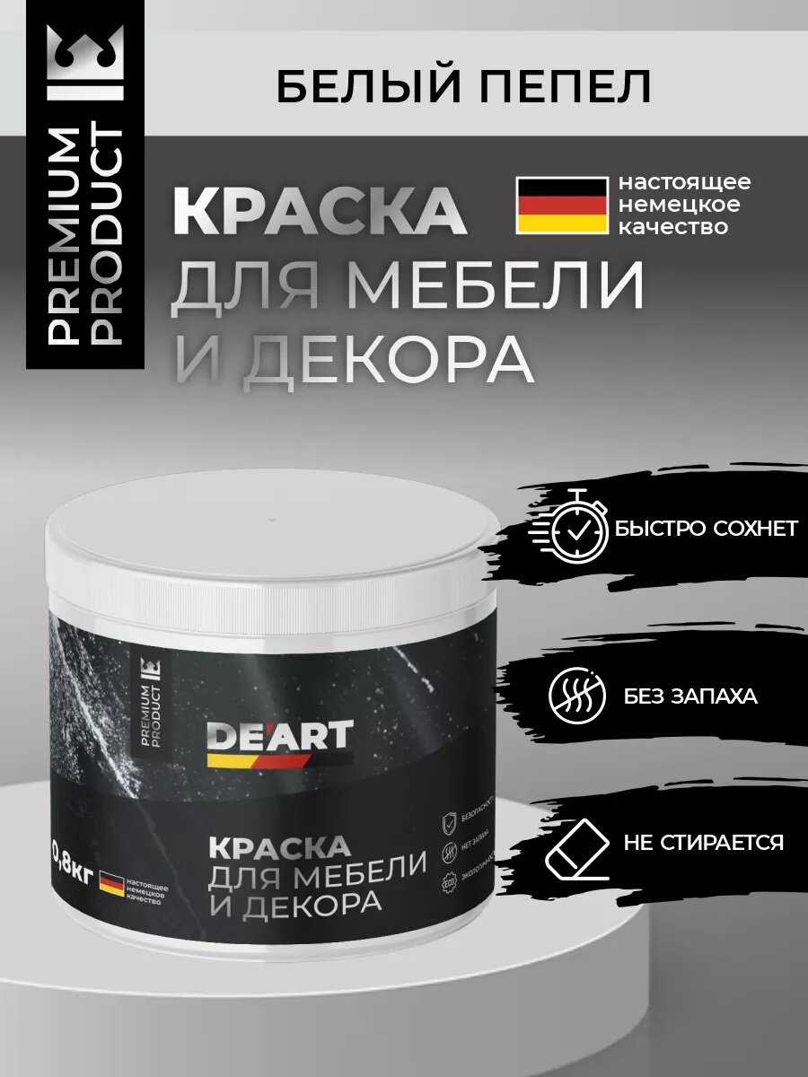 Меловая краска для мебели и дерева без запаха, белый пепел, 800мл информация: