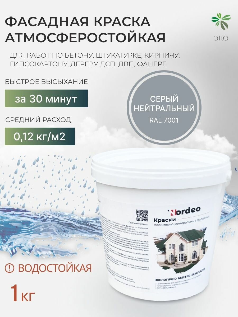 Краска фасадная Nordeo RAL 7001 1 кг, для стен, дерева, фасадная, без запаха информация: