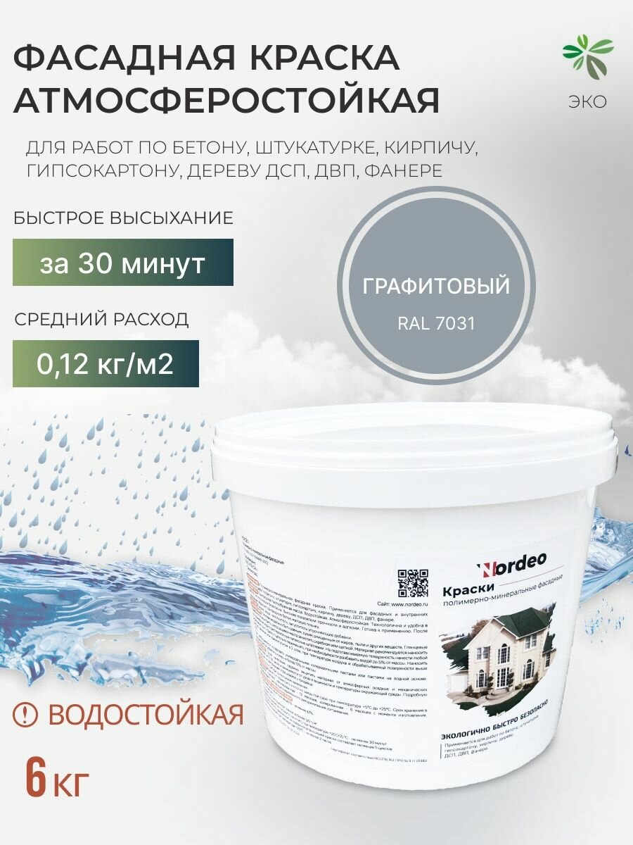 Краска для стен фасадная Nordeo, цвет графитовый, водостойкая, матовая, 3 кг 1 850 ₽