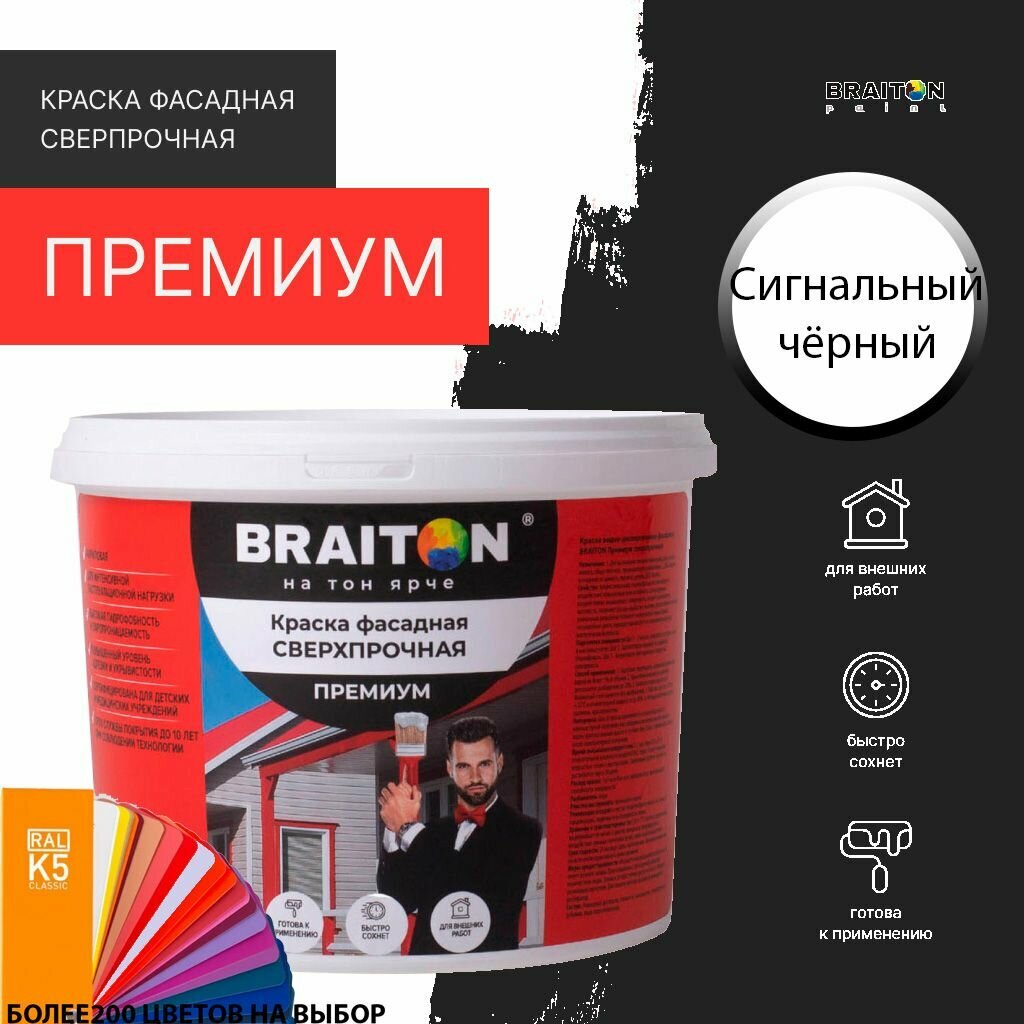 Краска ВД фасадная BRAITON Премиум Сверхпрочная 4 кг. Цвет Черный RAL 9005 4 124 ₽