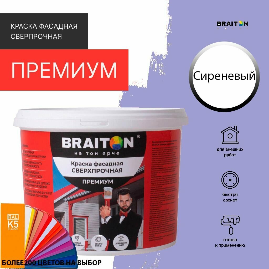 Краска ВД фасадная BRAITON Премиум Сверхпрочная 1,3 кг. Цвет Сиреневый (Tikkurila J 346) информация: