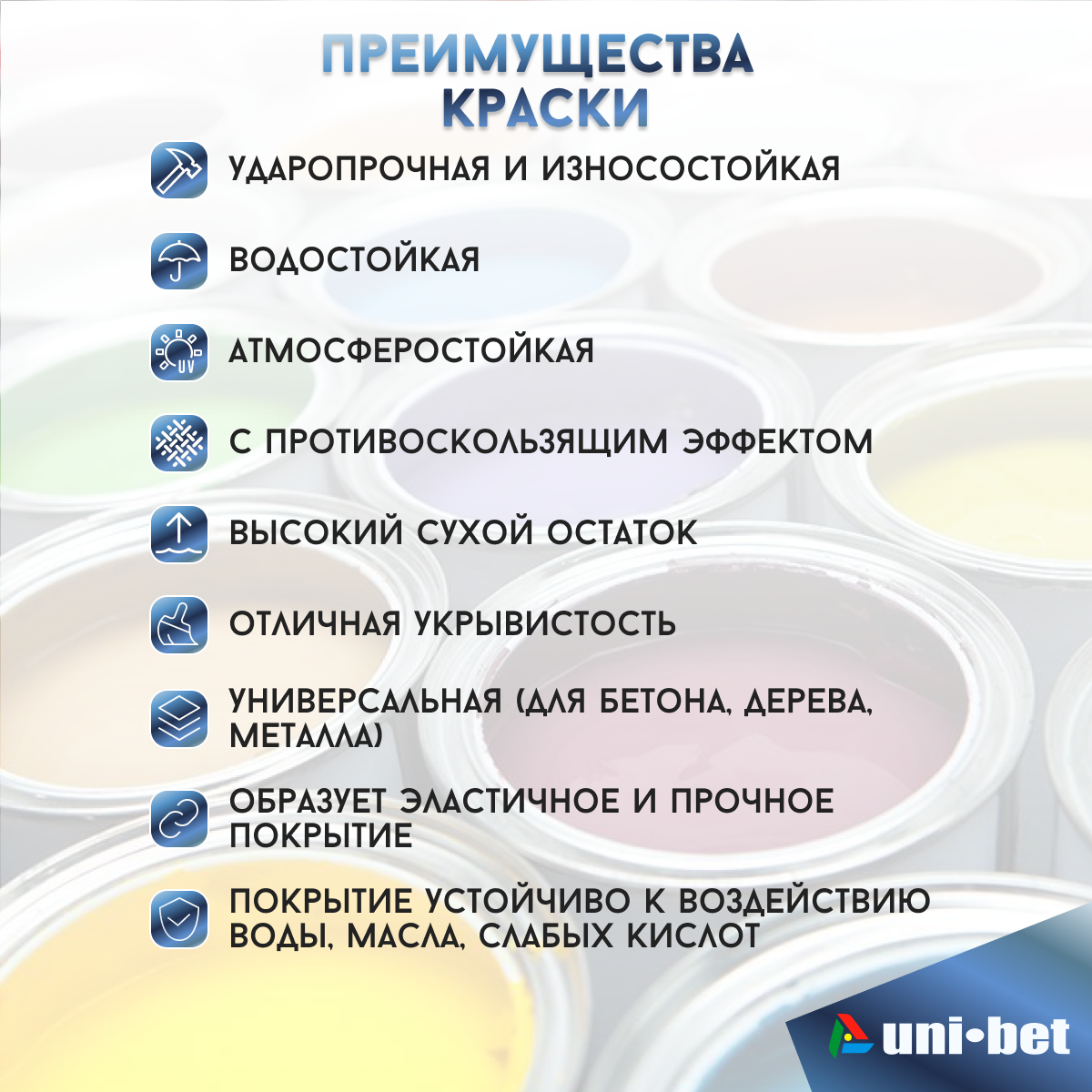 Жидкий пластик краска для бетона металла дерева асфальта UNI-BET 2,4л синий для наружных и внутренних работ/ Грунт эмаль UNI-BET информация: