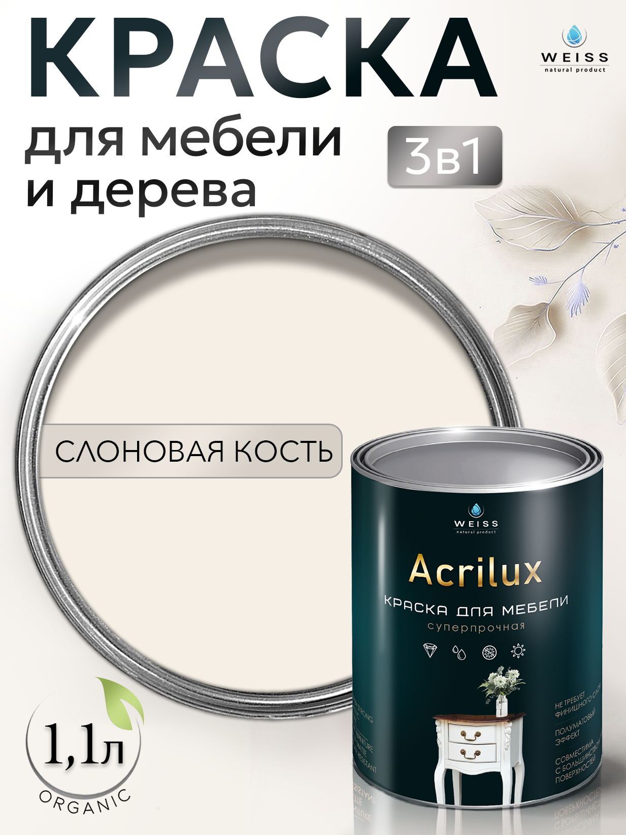 Краска для мебели и дерева, без запаха, Слоновая кость, 1,1л, Weiss Natural Product информация: