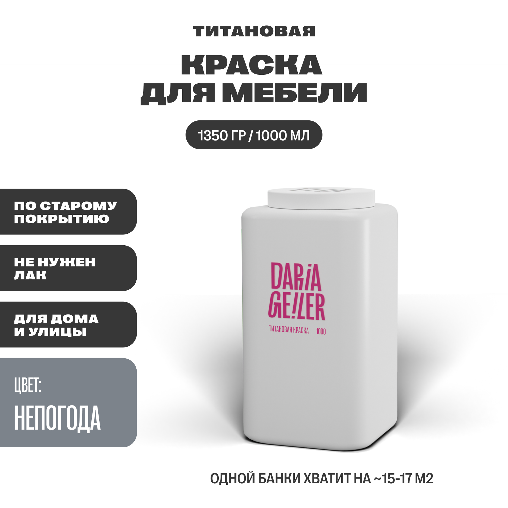 DARIA GEILER краска для мебели титановая Дарья Гейлер "Непогода" 1000 мл, водная, матовое покрытие, серая информация: