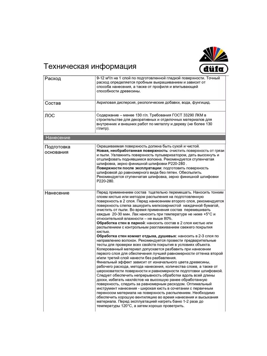 Лак для бань и саун Dufa Wood Sauna 0,9 л информация: