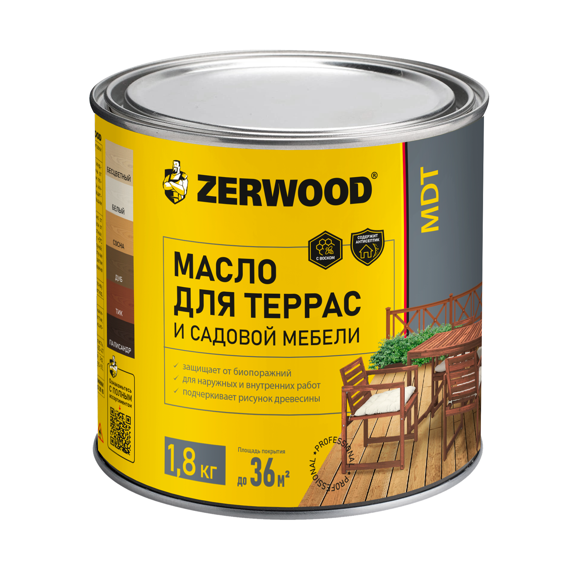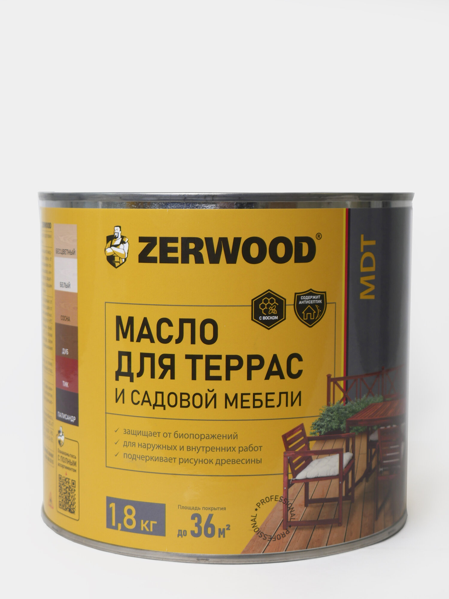 Масло для террас ZERWOOD MDT, белый - 1,8 кг. информация:
