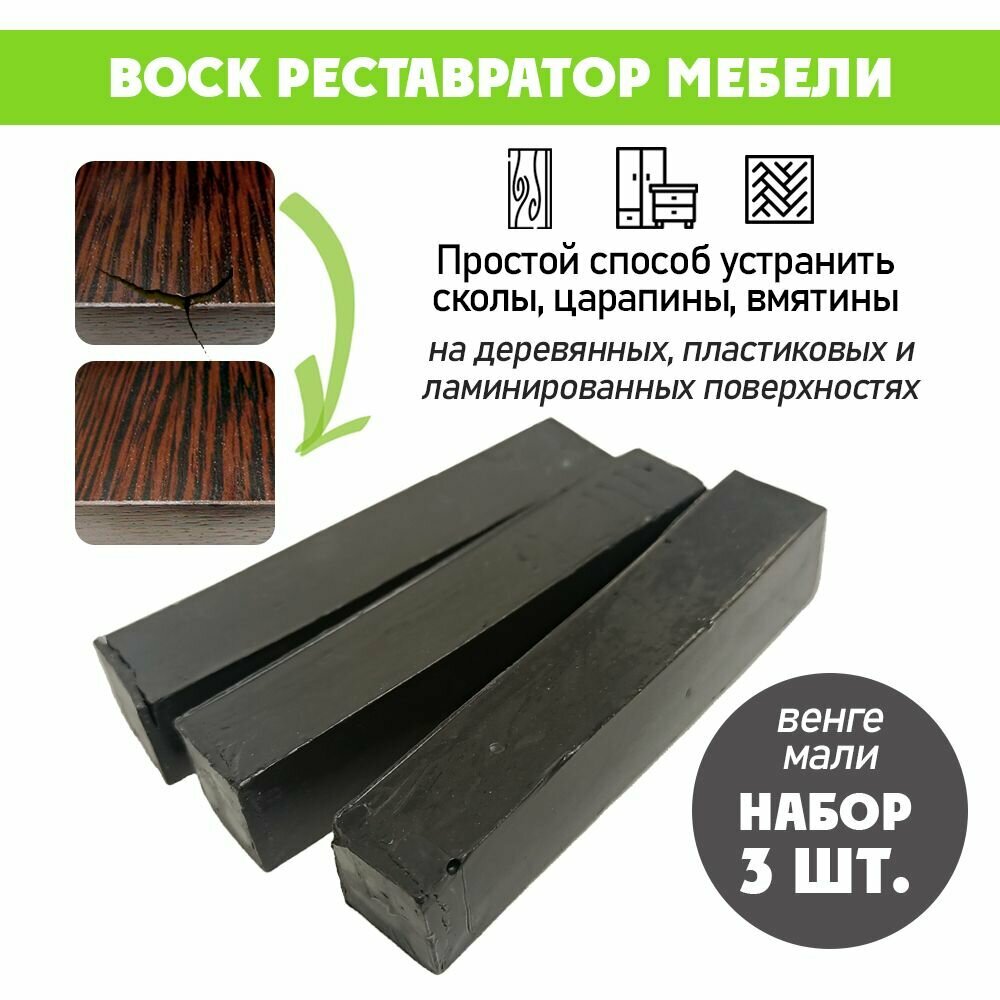 Воск мягкий для реставрации мебели и напольного покрытия/ 3 шт/ цвет - Венге Мали информация:
