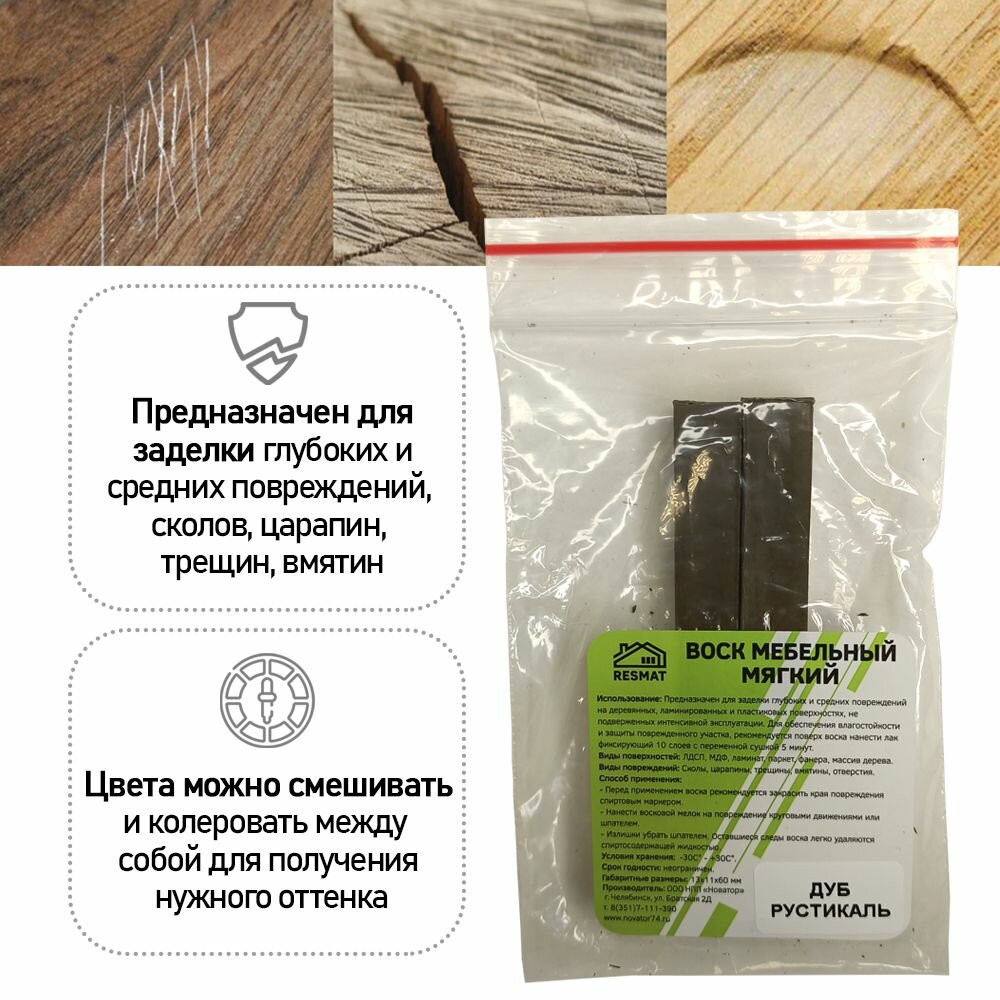 Воск мягкий для реставрации мебели и напольного покрытия/ 2 шт/ цвет - Дуб Рустикаль информация: