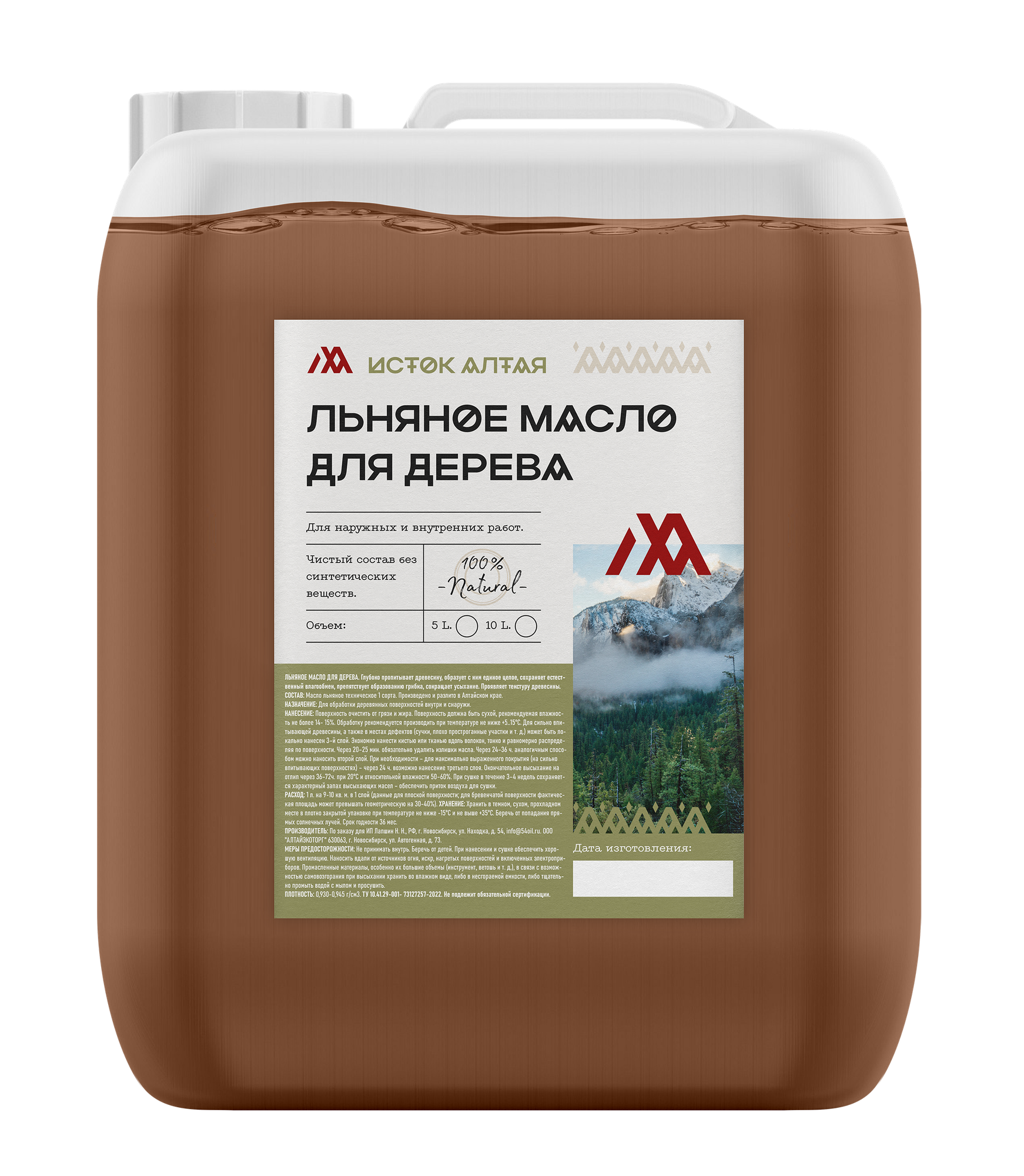 Льняное масло для дерева 10 л. информация: