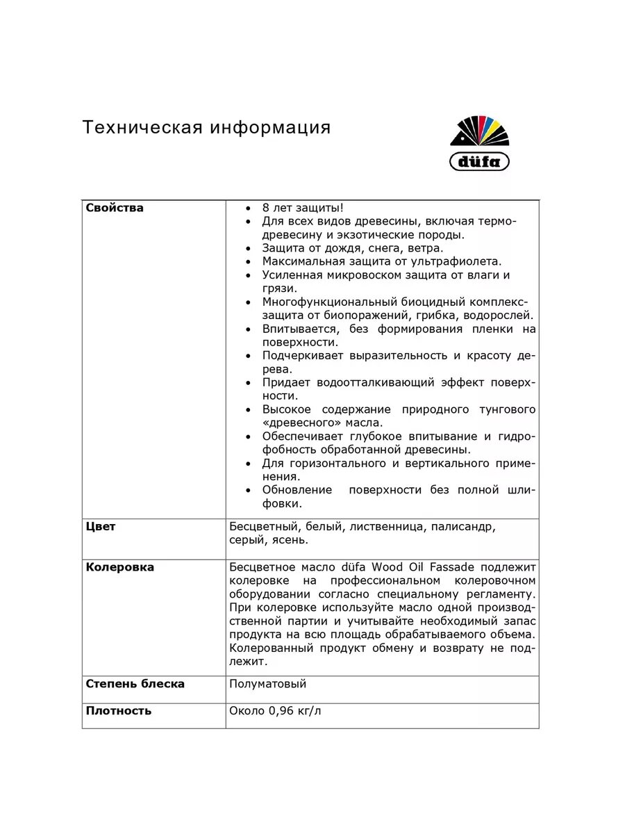 Масло деревозащитное для фасадов Dufa Wood Oil ясень 9 л. информация: