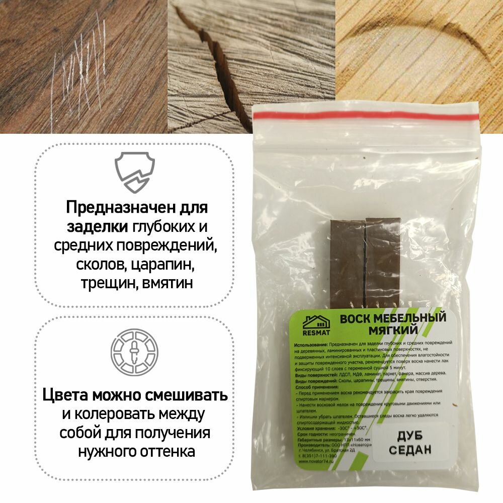 Воск мягкий для реставрации мебели и напольного покрытия/ 2 шт/ цвет - Дуб Седан информация: