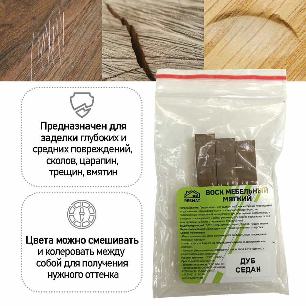 Воск мягкий для реставрации мебели и напольного покрытия/ 3 шт/ цвет - Дуб Седан информация: