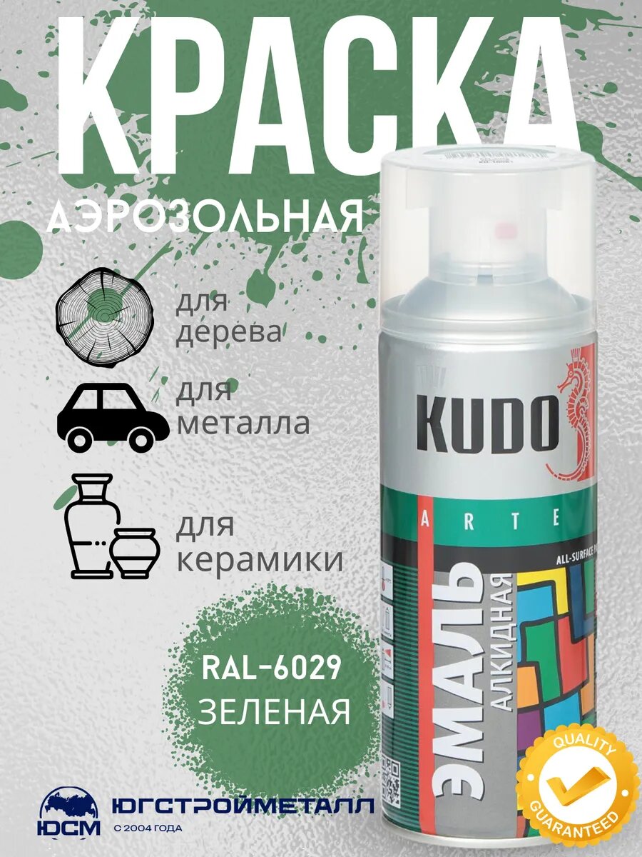 Аэрозольная краска в баллончике зеленая листва эмаль kudo 616 ₽