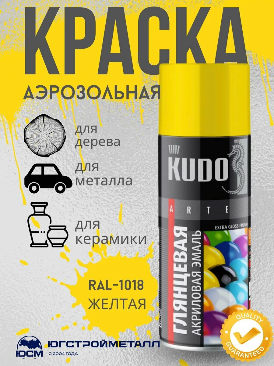 Аэрозольная краска в баллончике желтая глянцевая kudo 616 ₽