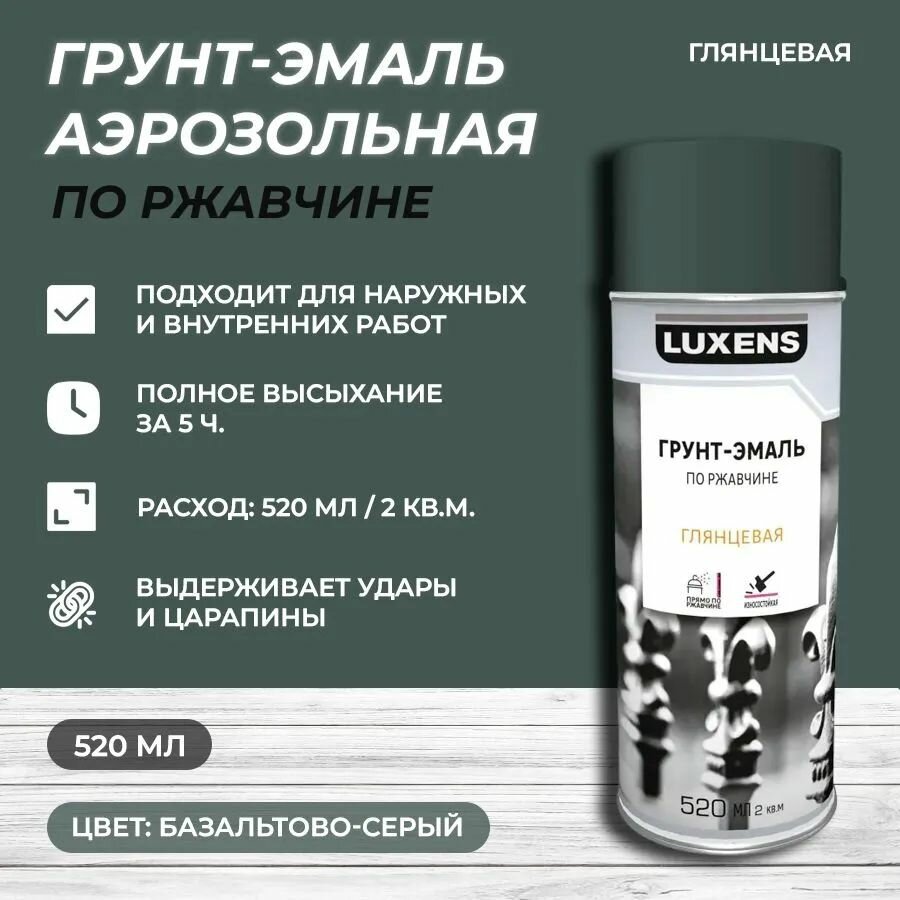 Грунт-эмаль аэрозольная по ржавчине Luxens глянцевая цвет базальтово-серый 520 мл информация: