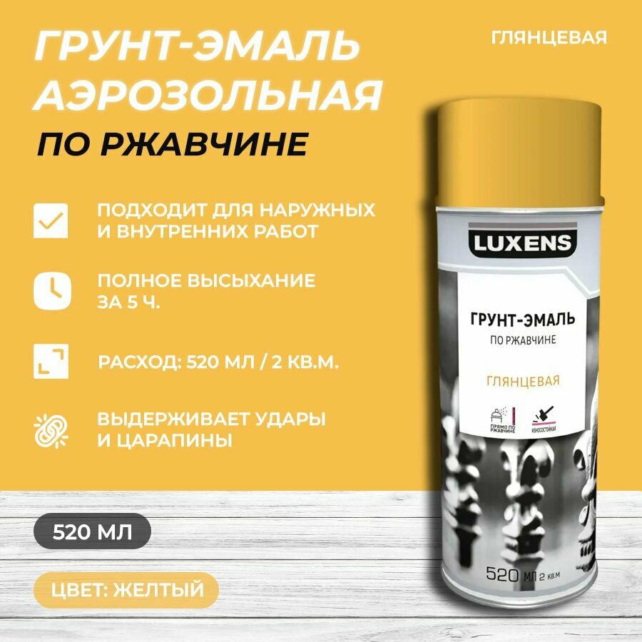 Грунт-эмаль аэрозольная по ржавчине Luxens глянцевая цвет желтый 520 мл информация: