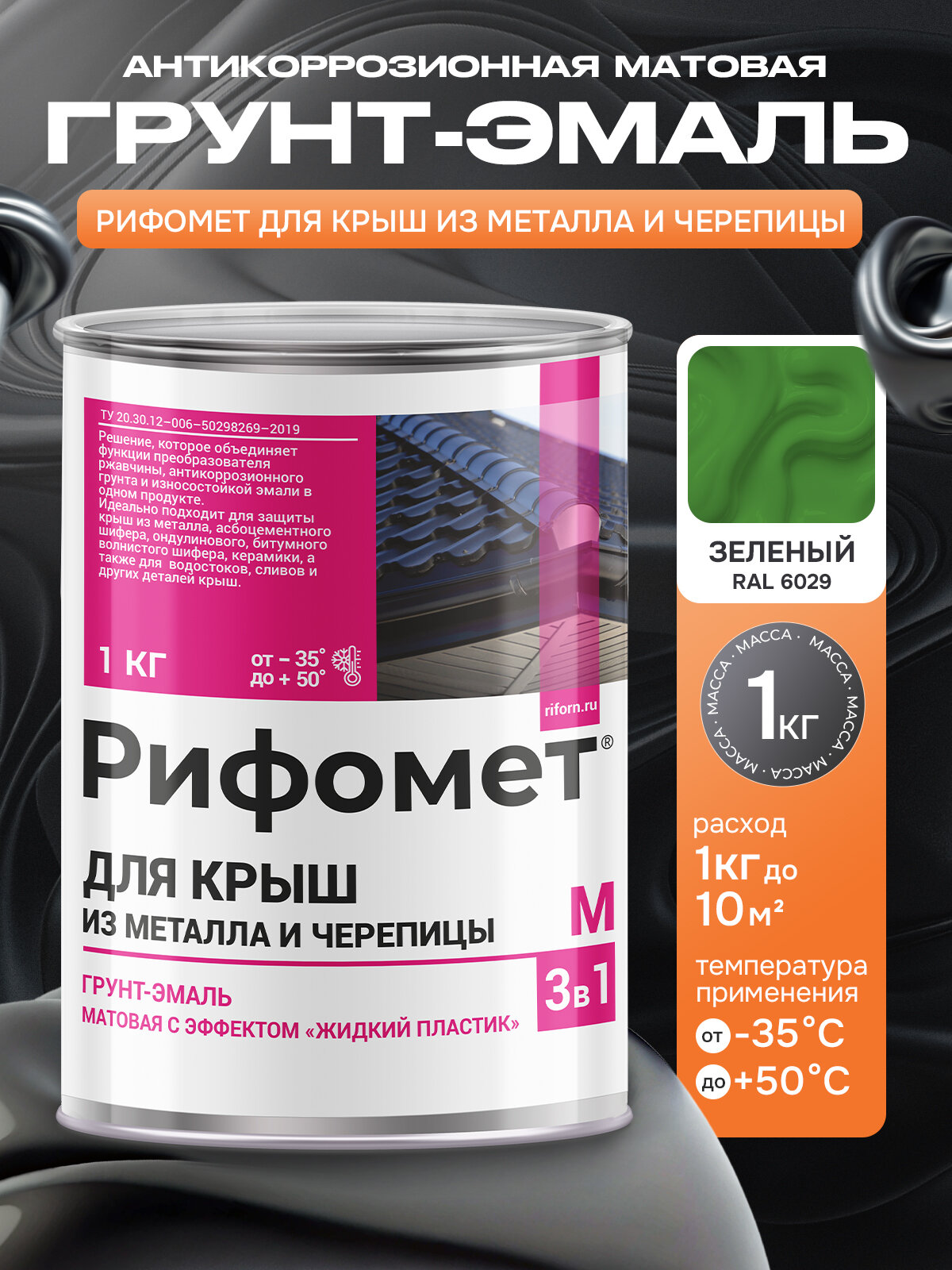 10 цен на Рифомет-м, Грунт-эмаль, Для крыш из металла и черепицы RAL 6029 (Зеленый) 1 кг