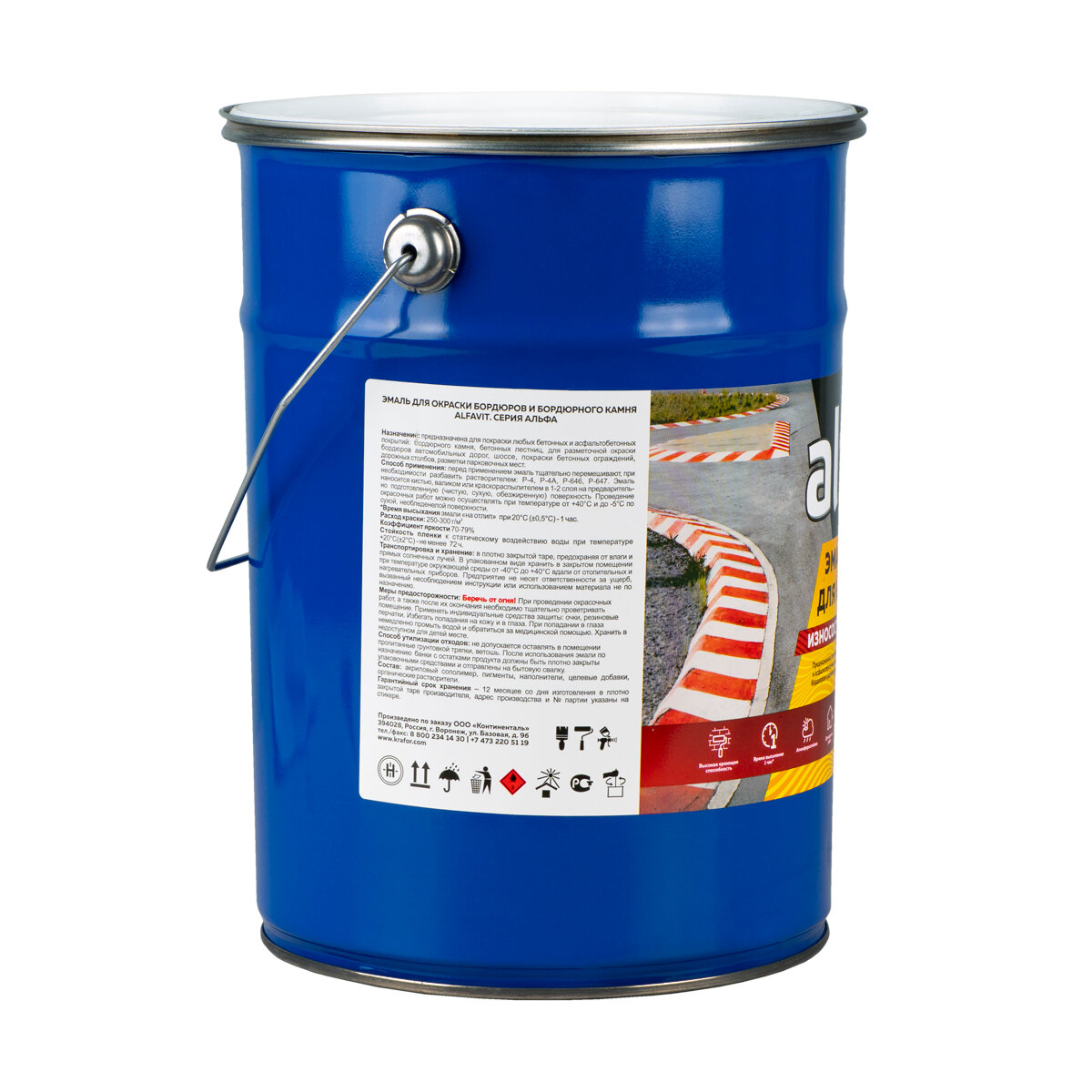 Краска для бордюрного камня Alfavit серия Альфа, износостойкая, 7 кг, белая, 1шт, жестяное ведро информация:
