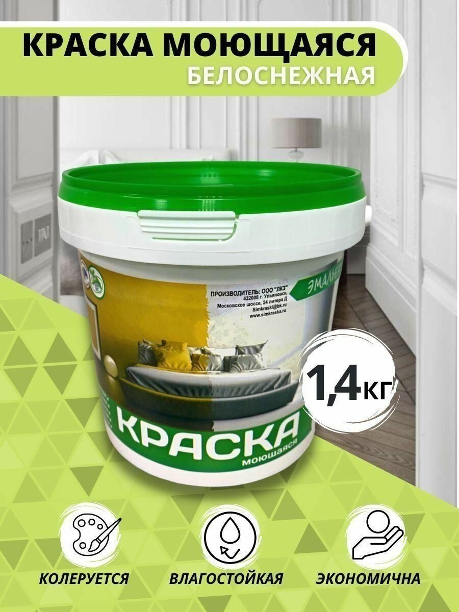 Эмаль ВД Симбирские Краски Эмальер, акриловая, моющаяся, белая 1,4 кг информация: