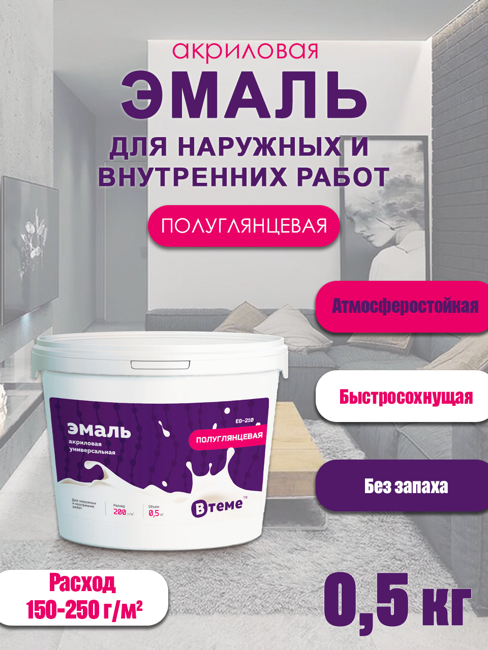 Эмаль акриловая универс. Полуглянцевая EG-210 (0,5кг) ТМ "ВTеме" информация: