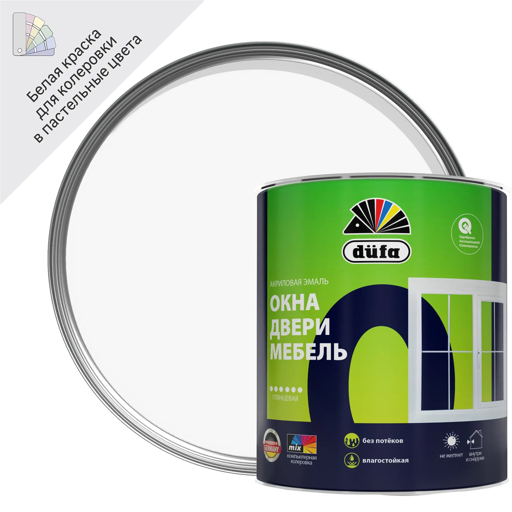 Эмаль для окон и дверей Dufa Aqua-Fensterlack глянцевая цвет белый 0.75 л информация: