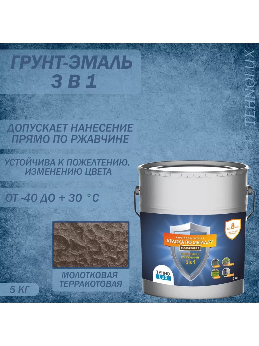 10 цен на Грунт-эмаль 3 в 1 Технолюкс молотковая терракотовый 5 кг