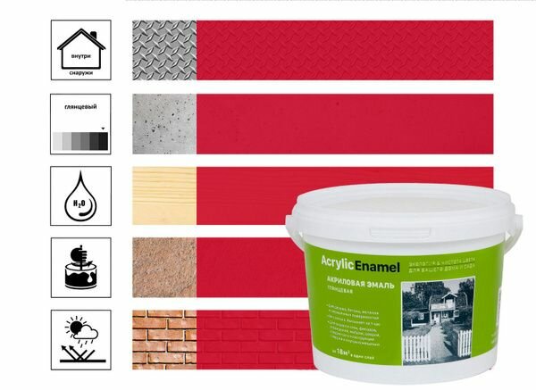 10 цен на Лучшая цена Акриловая эмаль красная (1,8кг)