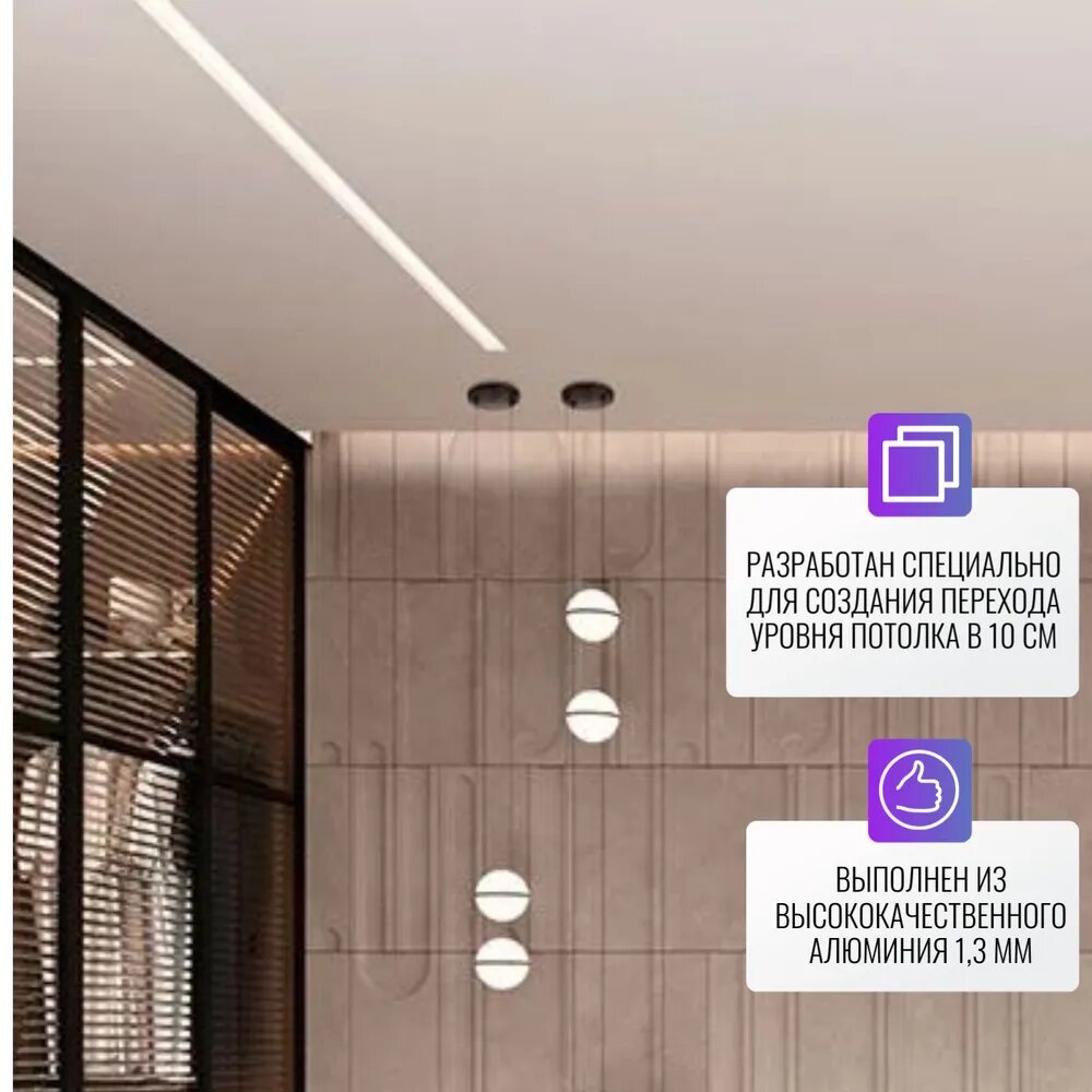 Профиль для создания ниши или подиума для потолка из ГКЛ шириной в 10 см, 2 м, 1 шт, цвет черный