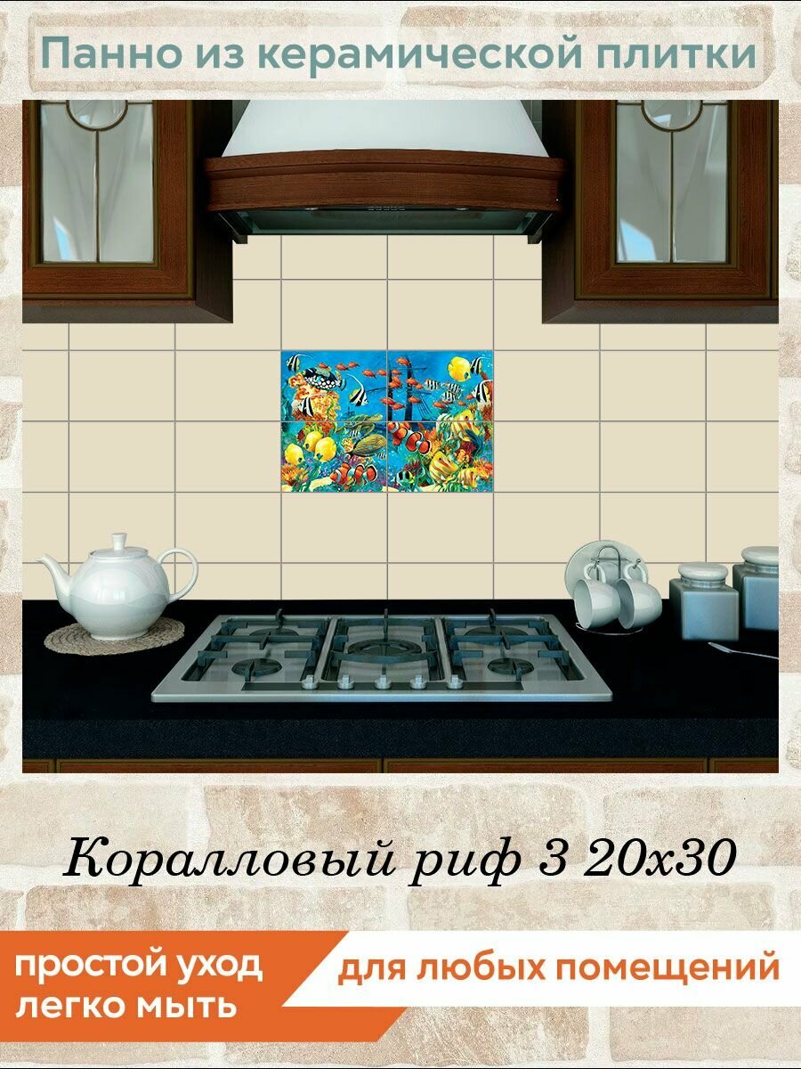 Панно из плитки Fres-co "Коралловый риф 20х30", керамическое, декоративное, полуглянцевое, 60х40 см информация: