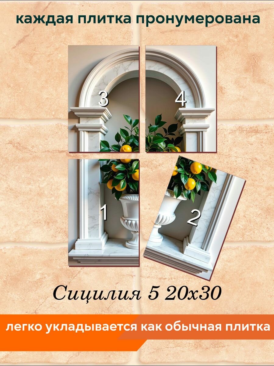 Панно из плитки Fres-co "Сицилия 5 20х30", керамическое, декоративное, полуглянцевая поверхность, 40х60 см информация: