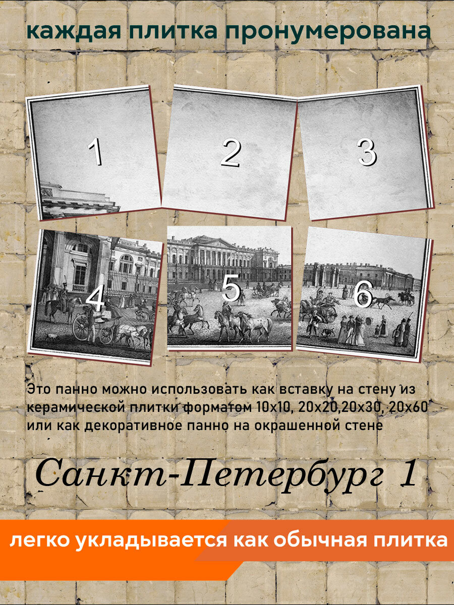 Панно из плитки Fres-co "Санкт-Петербург 1", керамическое, полуглянцевое, с рисунком, 60х40 см информация: