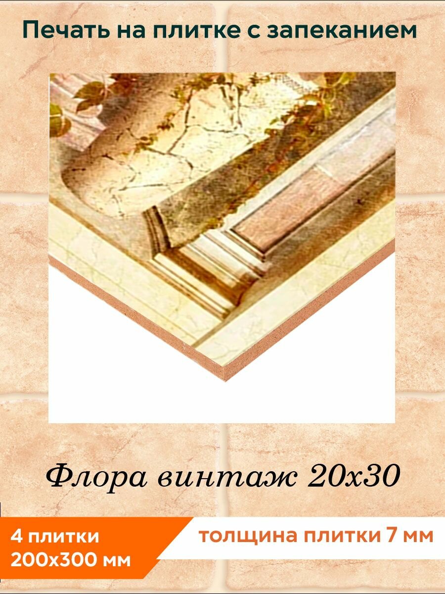 Панно из плитки Fres-co "Флора винтаж 20x30", керамическое, декоративное, полуглянцевое, 40х60 см информация: