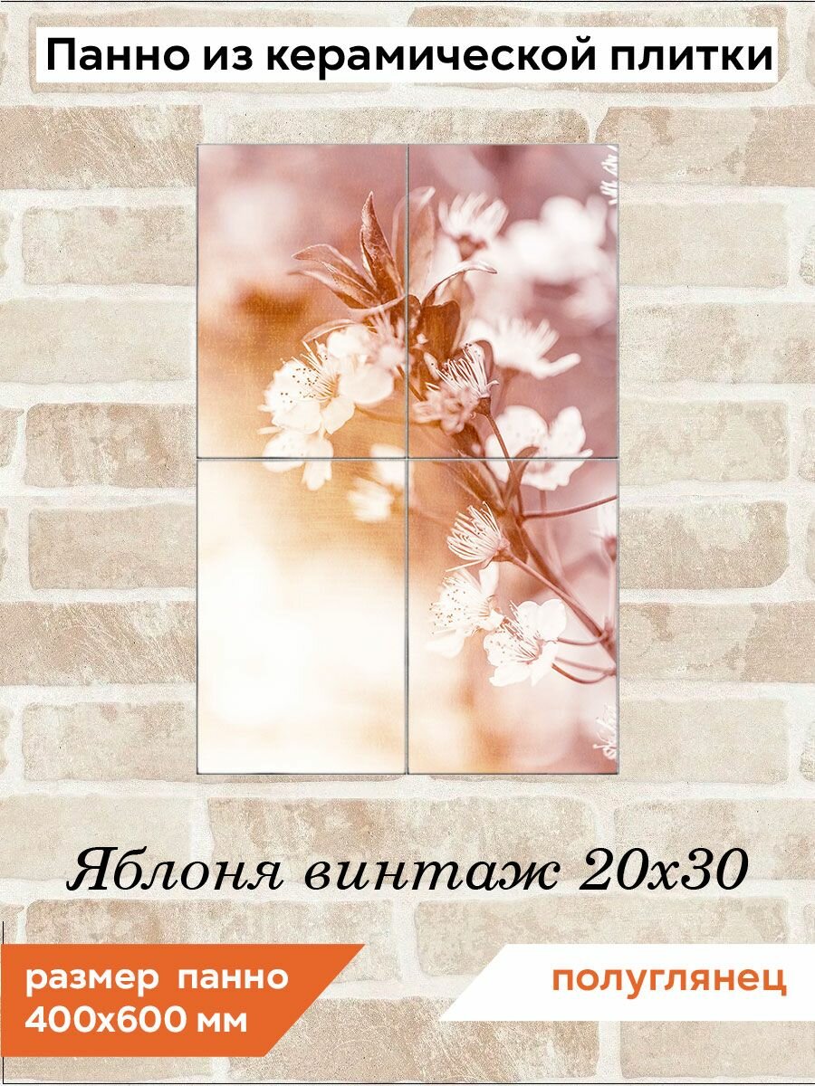 Панно из плитки Fres-co "Яблоня винтаж 20х30", керамическое, декоративное, полуглянцевое, 40х60 см информация: