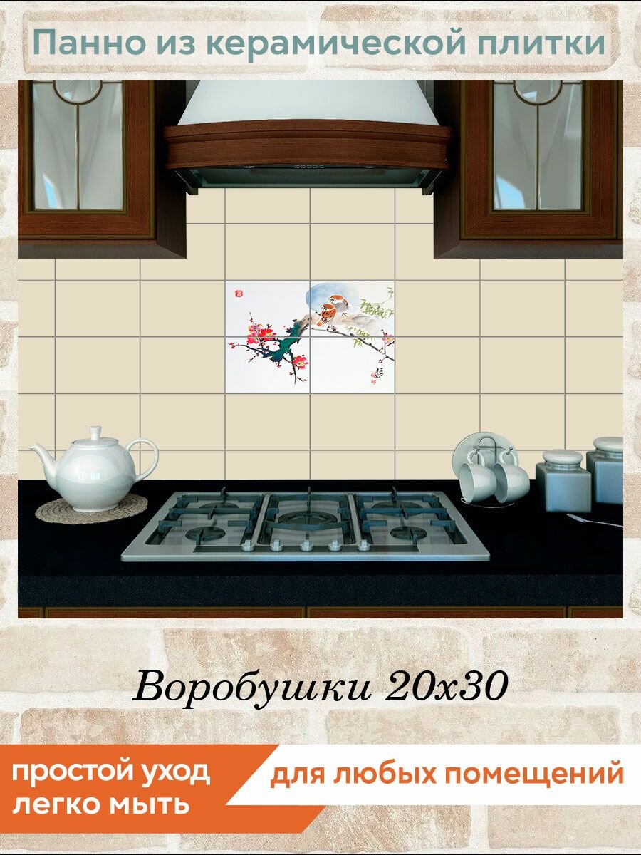 Панно из плитки Fres-co "Воробушки 20х30" керамическое, полуглянцевое, с рисунком, 60х40 см информация: