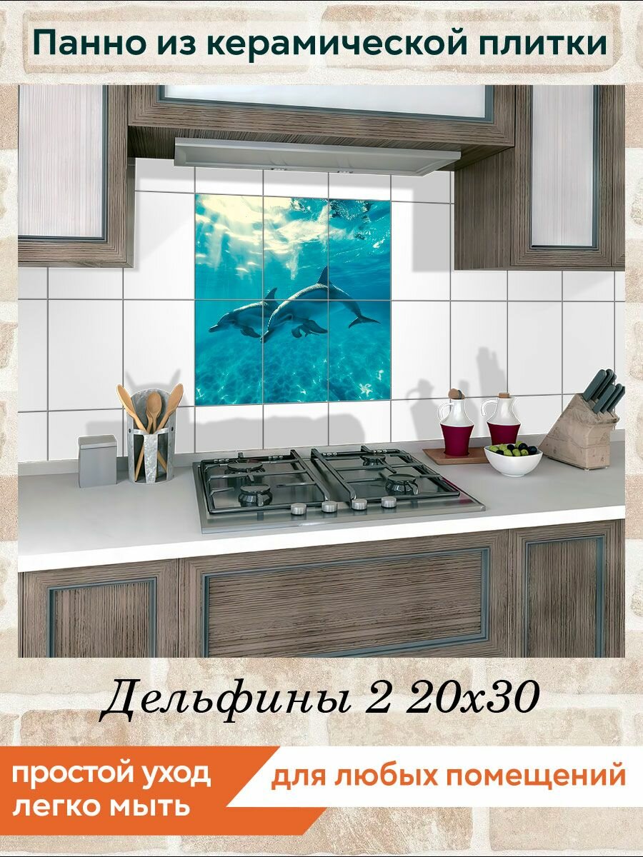 Панно из плитки Fres-co "Дельфины 2 20х30", керамическое, декоративное, полуглянцевое, 60х60 см информация: