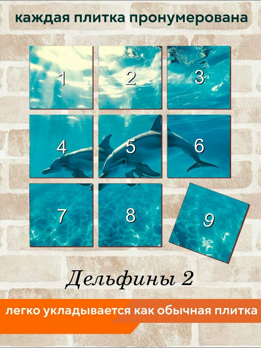 10 цен на Панно из плитки Fres-co "Дельфины 2", керамическое, декоративное, полуглянцевое, 60х60 см