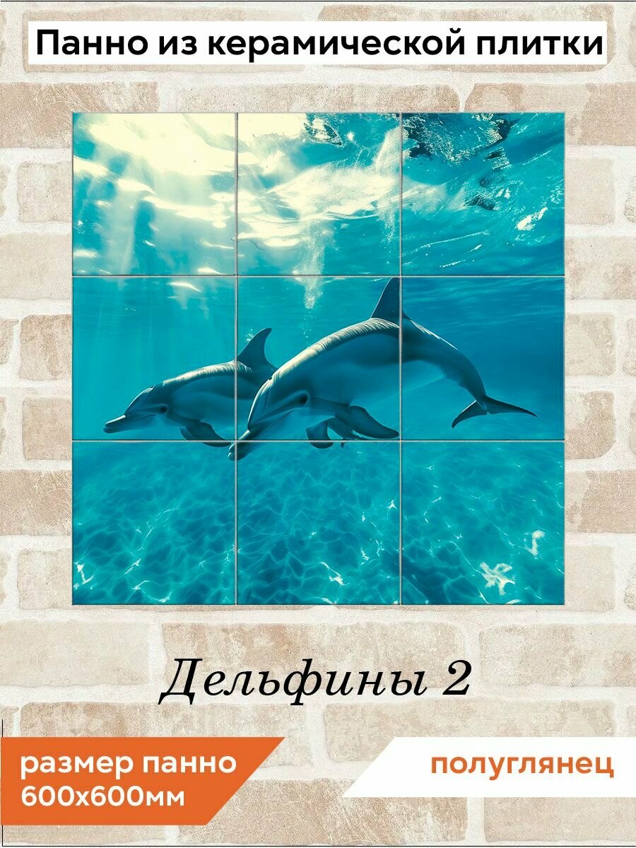 Панно из плитки Fres-co "Дельфины 2", керамическое, декоративное, полуглянцевое, 60х60 см информация: