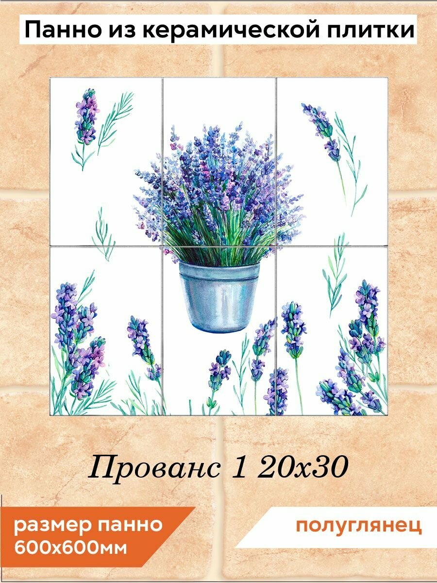 Панно из плитки Fres-co "Прованс 1 20х30", керамическое, декоративное, полуглянцевое, 60х60см информация: