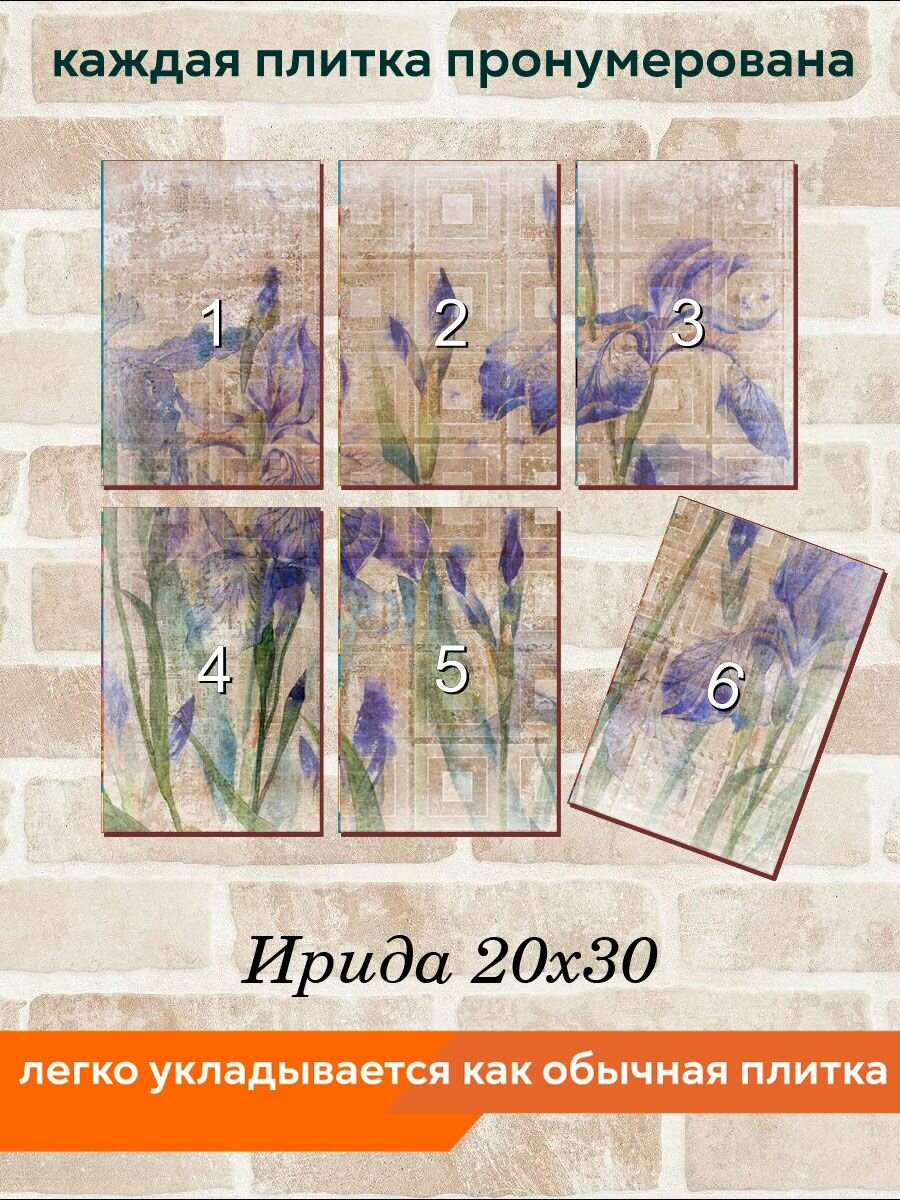Панно из плитки Fres-co "Ирида 20х30", керамическое, декоративное, полуглянцевое, 60x60 см информация: