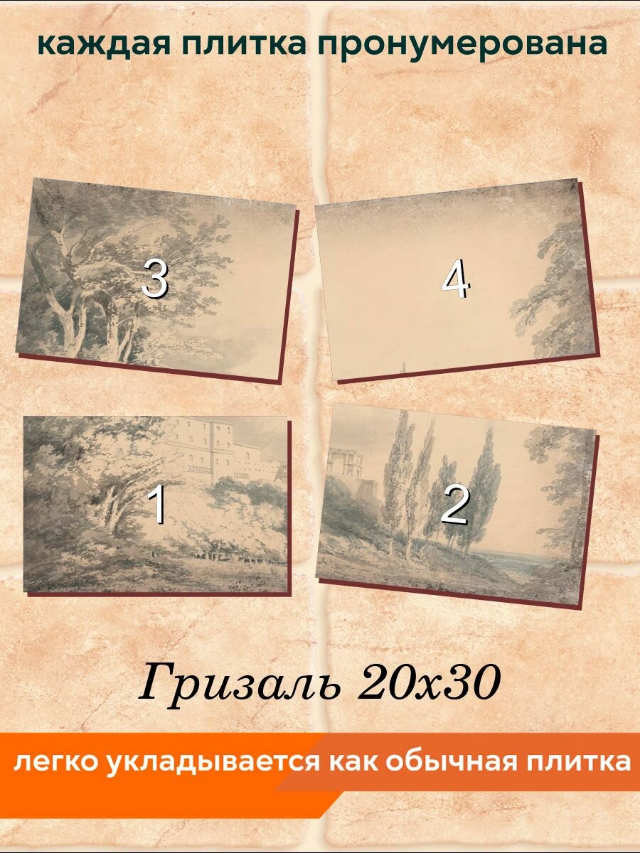 Панно из плитки Fres-co "Гризаль 20х30", керамическое, полуглянцевое, с рисунком 40x60см информация: