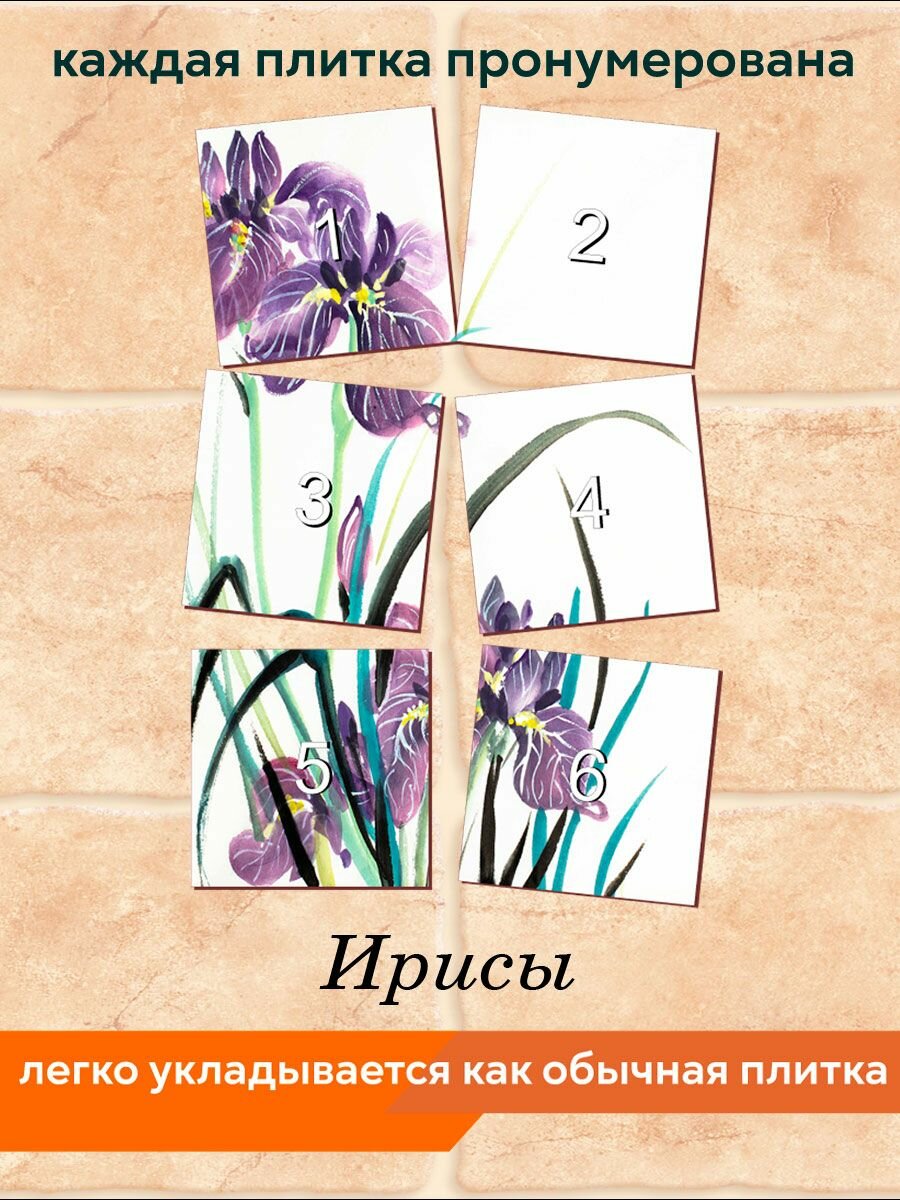 Панно из плитки Fres-co "Ирисы", керамическое, полуглянцевое, декоративное, 60х40 см информация: