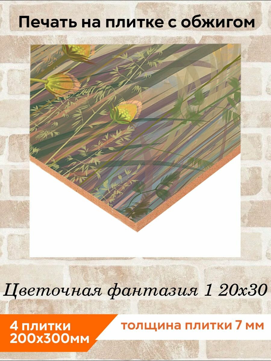 Панно из плитки Fres-co "Цветочная фантазия 1 20х30", керамическое, декоративное, полуглянцевое, 60х40 см информация: