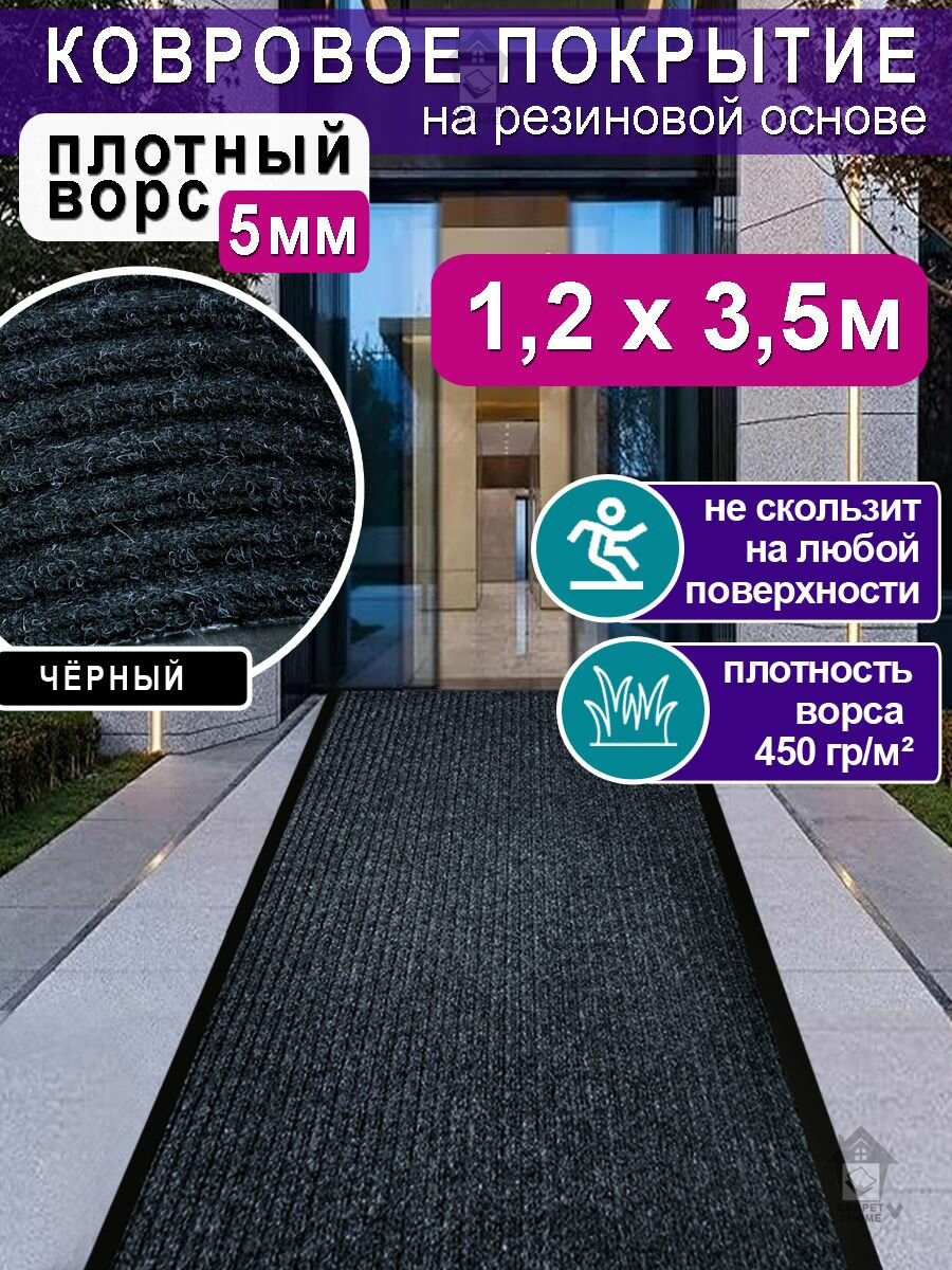 Ковролин на резиновой основе 120х350 для дома и офиса Черный информация: