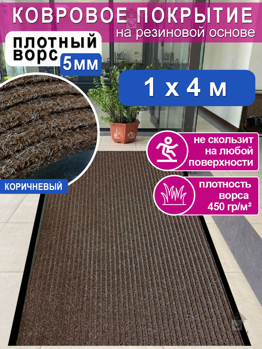 Ковролин на резиновой основе 100х400 для дома и офиса Коричневый информация: