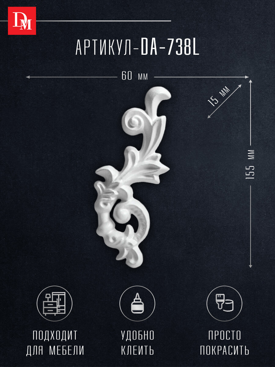 Отзывы на Орнамент декор для дома, Decomaster DA 738L, лепнина полиуретан, 60 х 155 х 15 мм