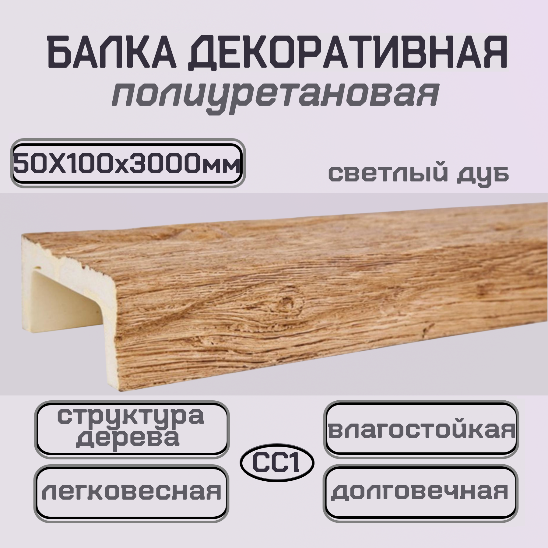 Балка потолочная декоративная из полиуретана Имитация бруса 50ммх100ммх3000мм информация: