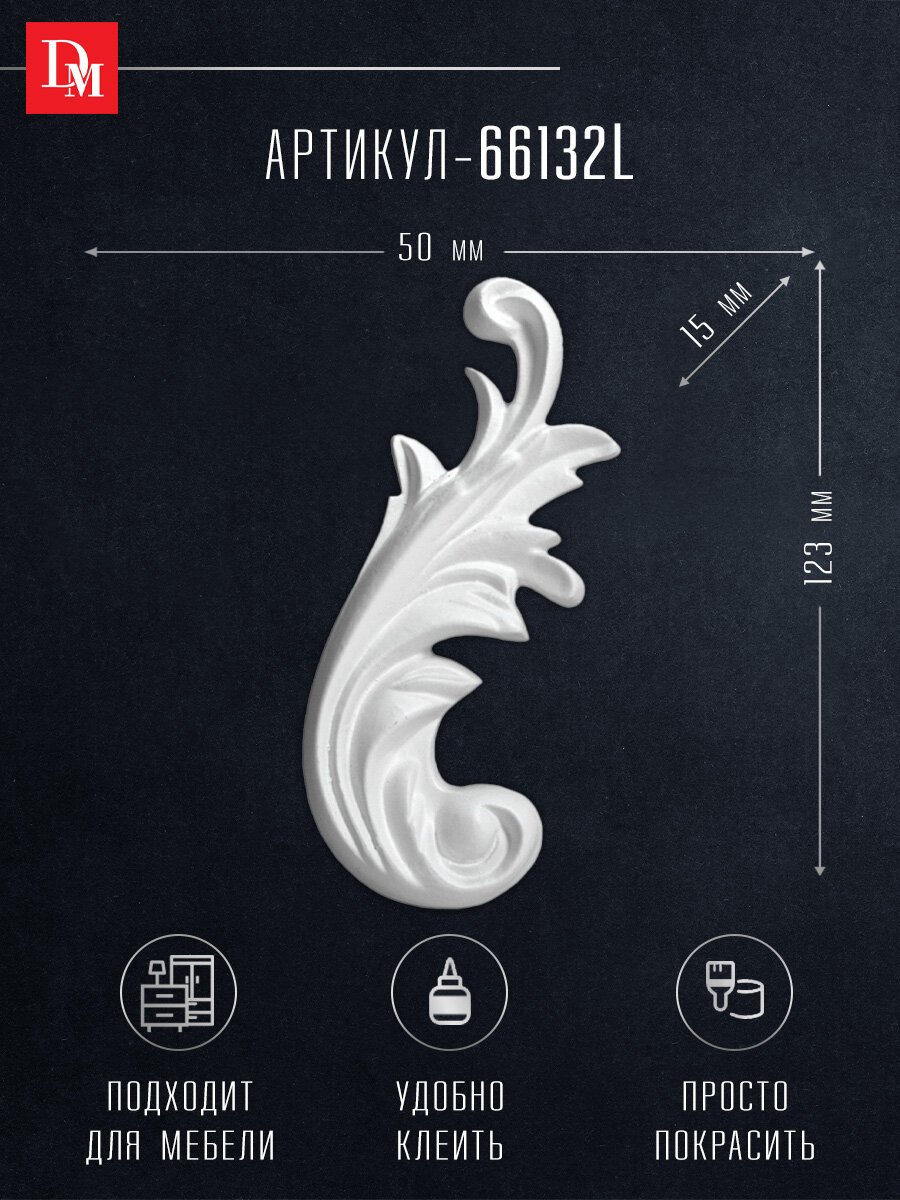 Орнамент декор для дома, Decomaster 66132L, лепнина полиуретан, 50 х 123 х 15 мм информация: