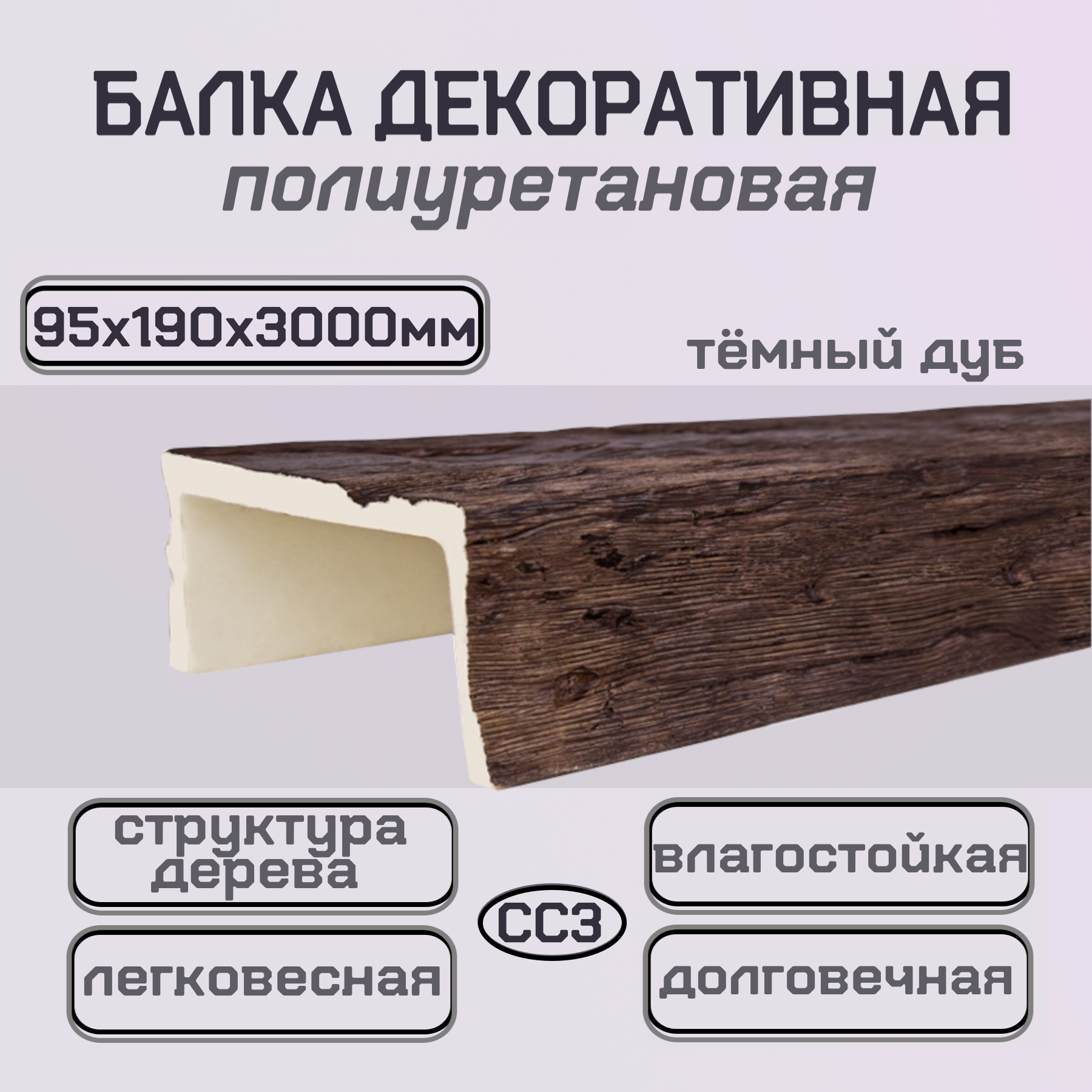 Балка полиуретановая декоративная на потолок и стены 95ммх190ммх3000мм информация: