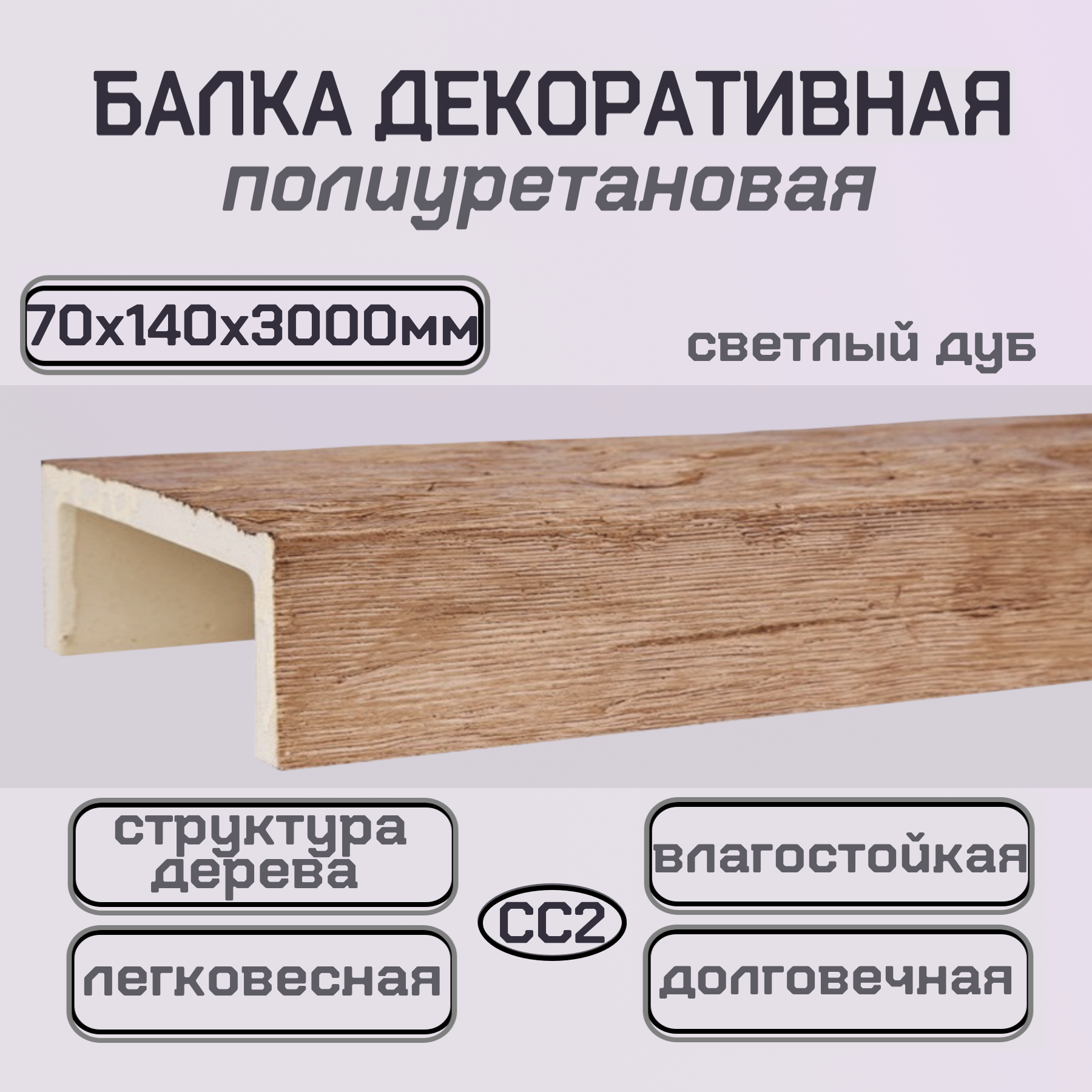 Балка потолочная декоративная из полиуретана Имитация дерева 70ммх140ммх3000мм информация: