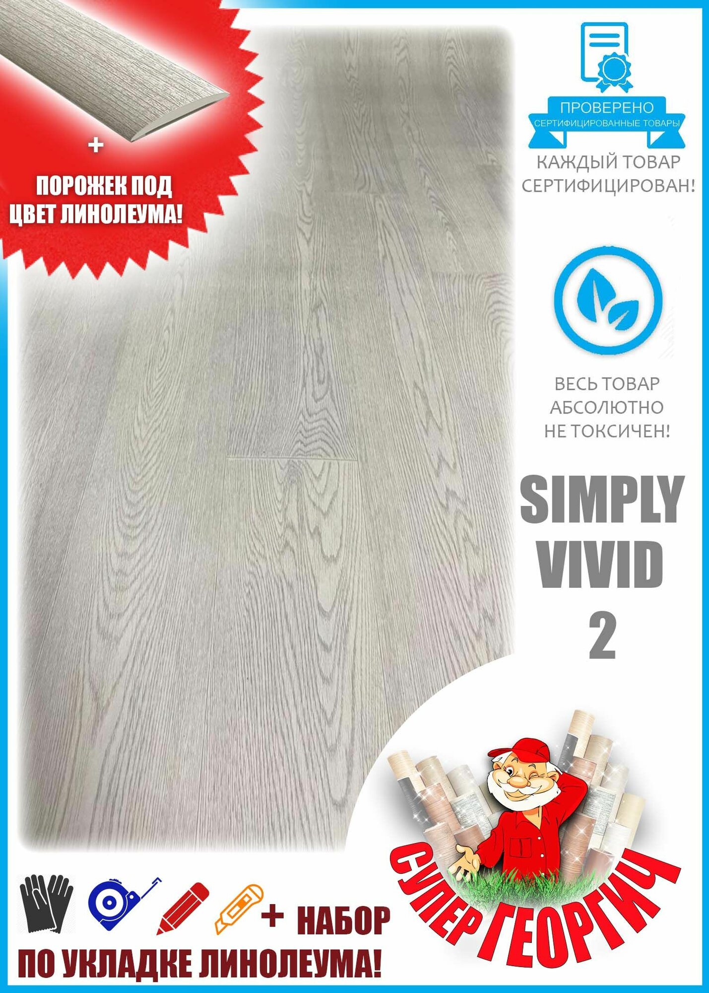 Линолеум для пола на отрез Simply Vivid-2, 2м на 7,5 Бытовой, цвет светло-серый информация: